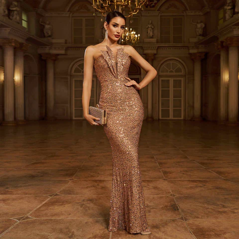 Elevate your style with our Appliqued Floral Backless Mermaid Dress! This stunning dress features intricate floral appliques for a feminine and elegan..